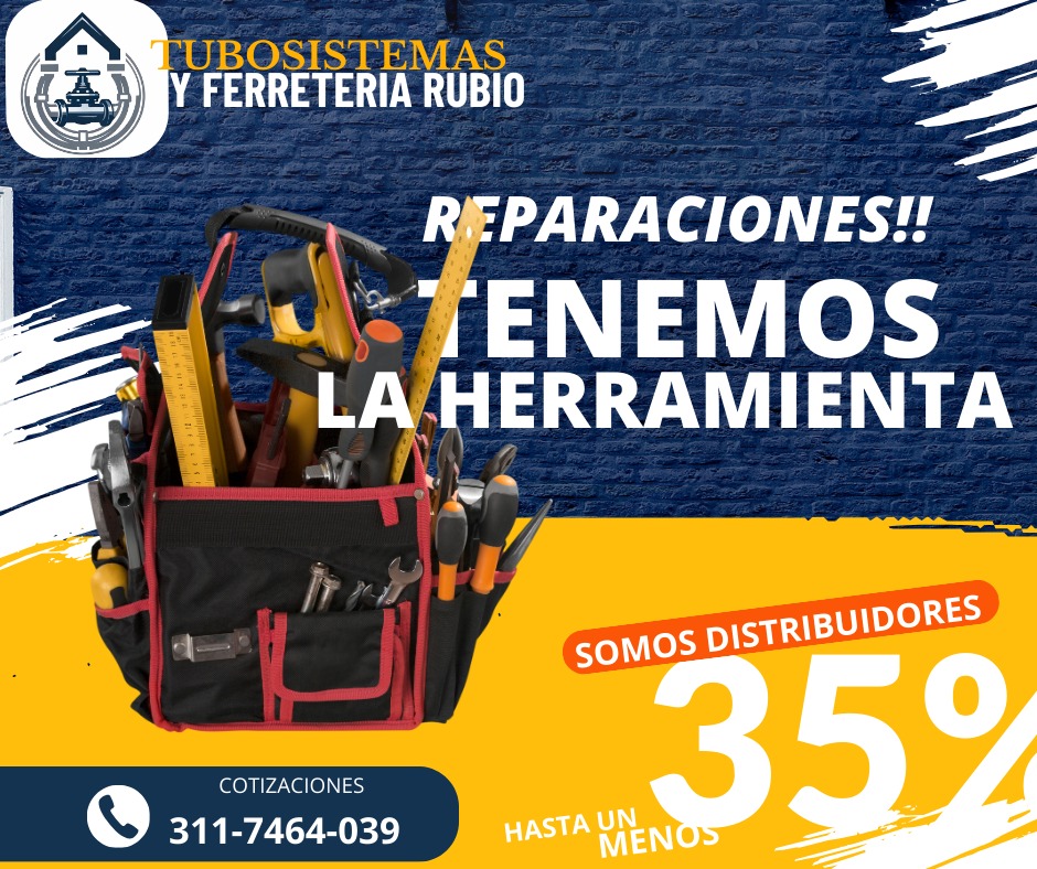 En Tubosistemas y Ferretería Rubio ofrecemos soluciones completas en ferretería y sistemas de tubería para el hogar, la construcción y la industria. Contamos con una amplia variedad de tuberías, conexiones y materiales de alta calidad, así como herramientas y productos ferreteros para todo tipo de proyecto. Nuestro compromiso es brindarte productos confiables, atención personalizada y asesoría experta para que encuentres exactamente lo que necesitas.