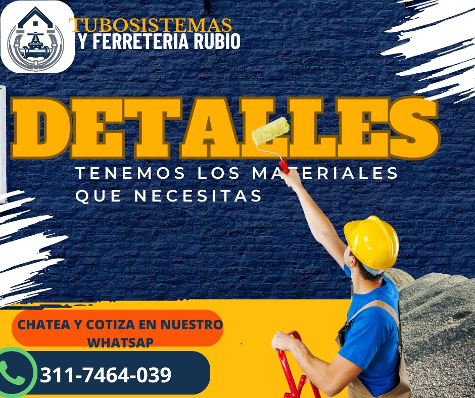 En Tubosistemas y Ferretería Rubio ofrecemos soluciones completas en ferretería y sistemas de tubería para el hogar, la construcción y la industria. Contamos con una amplia variedad de tuberías, conexiones y materiales de alta calidad, así como herramientas y productos ferreteros para todo tipo de proyecto. Nuestro compromiso es brindarte productos confiables, atención personalizada y asesoría experta para que encuentres exactamente lo que necesitas.